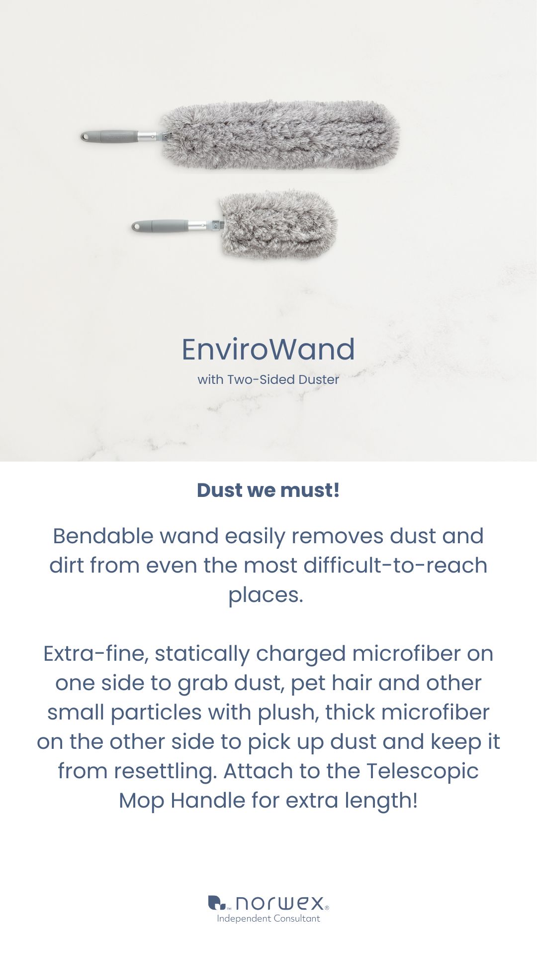 - ENVIROWAND With Chenille DUSTER – 2 sizes (Small is similar to a swiffer duster, but without the continual need for new sleeves. Simply shake out into a garbage or rinse and hang to dry.