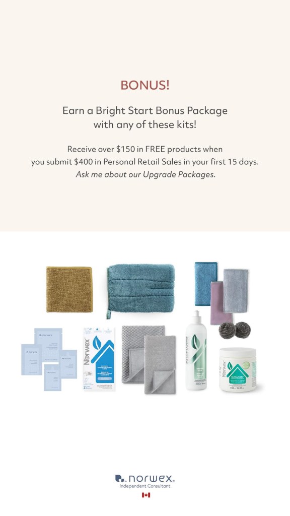 The 2 kits are both excellent options. If you are just beginning your Norwex journey or want to grow a thriving business, option 1 is my recommendation. If you have lots of Norwex and want to get the new items at a discount, then option 2 is perfect.